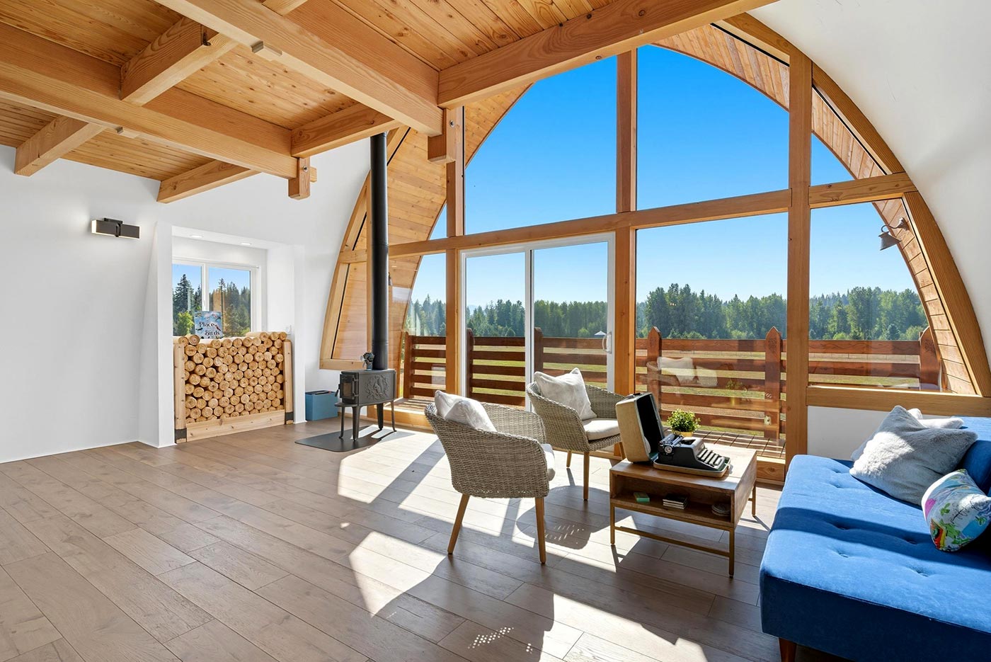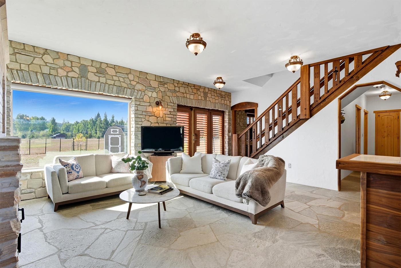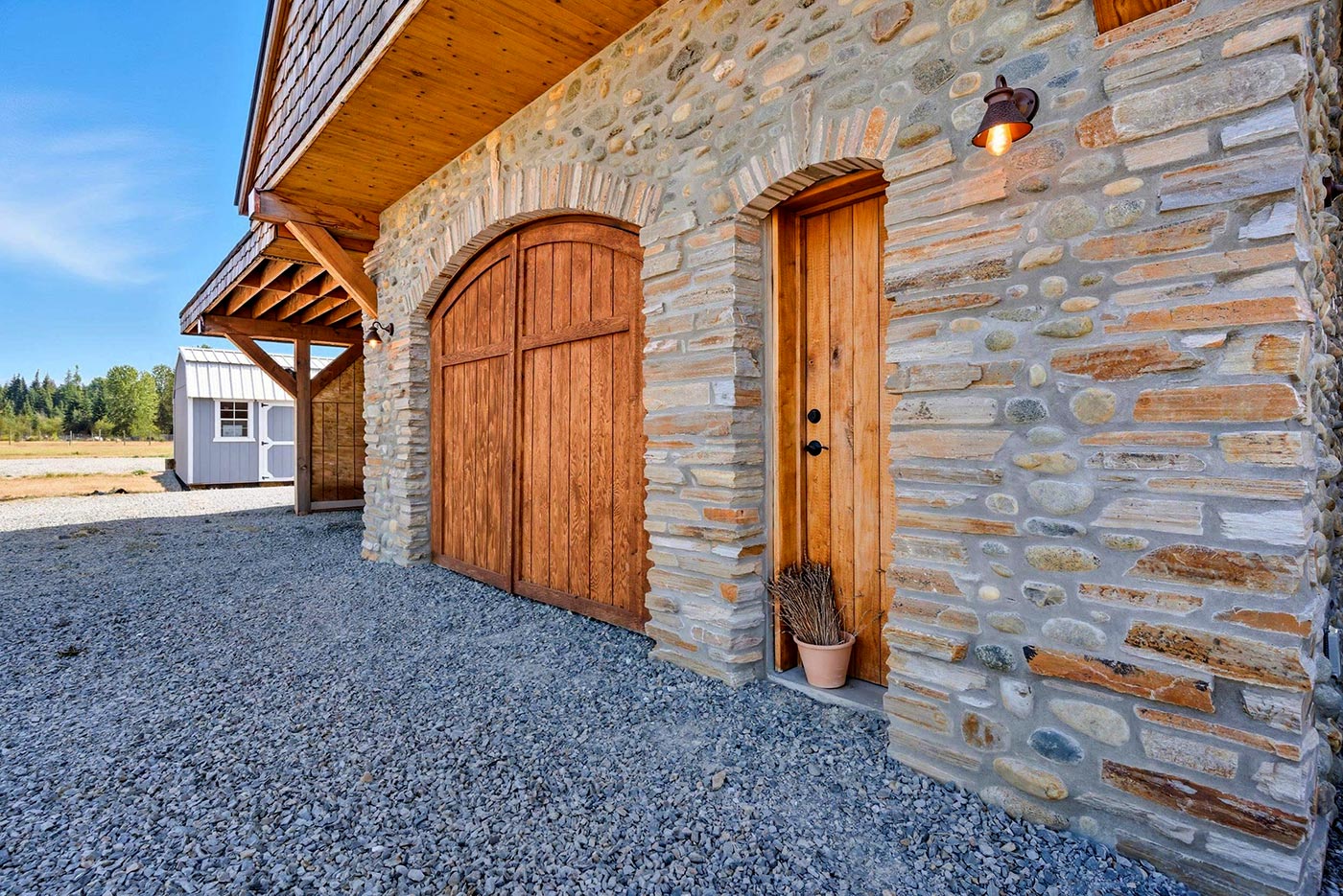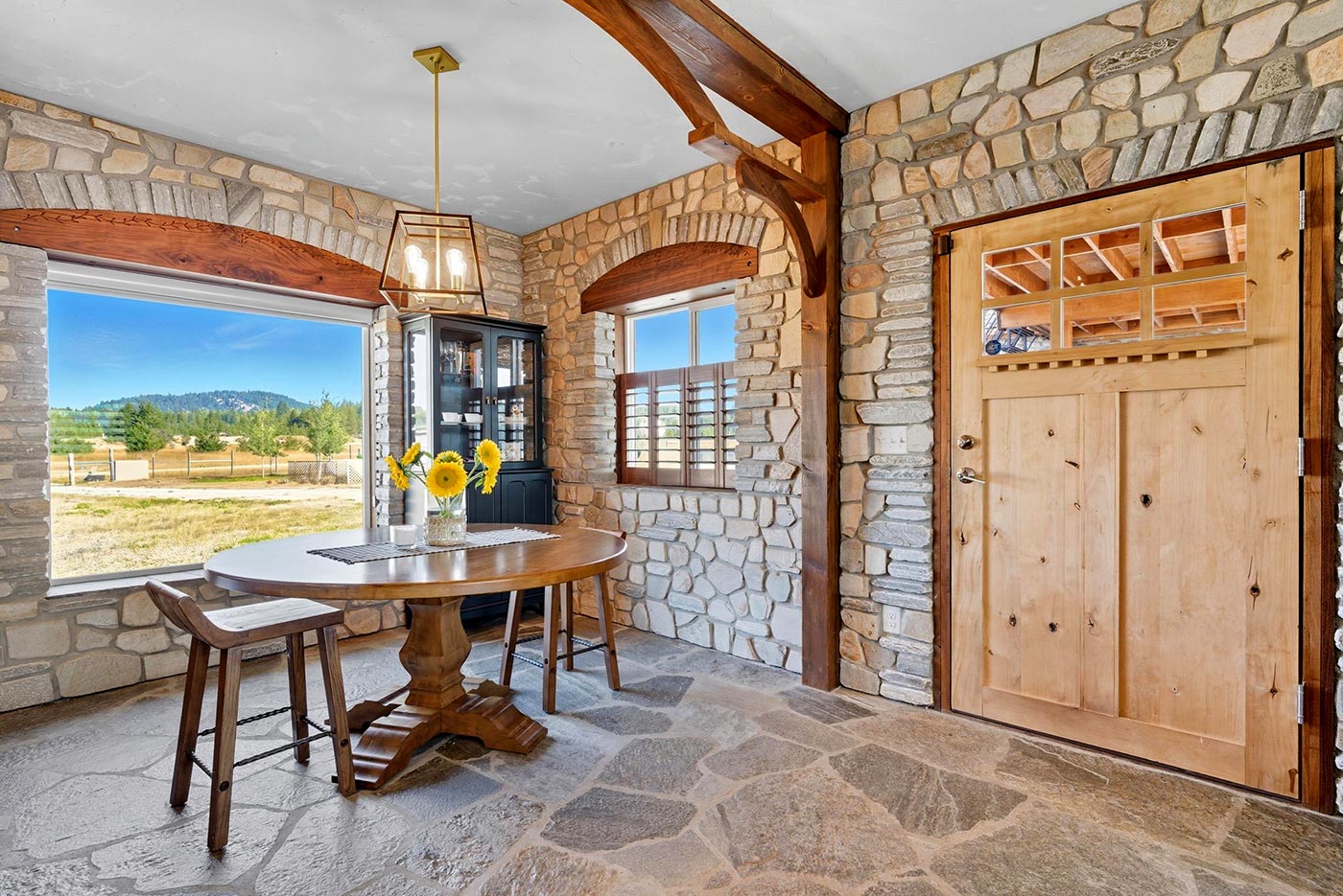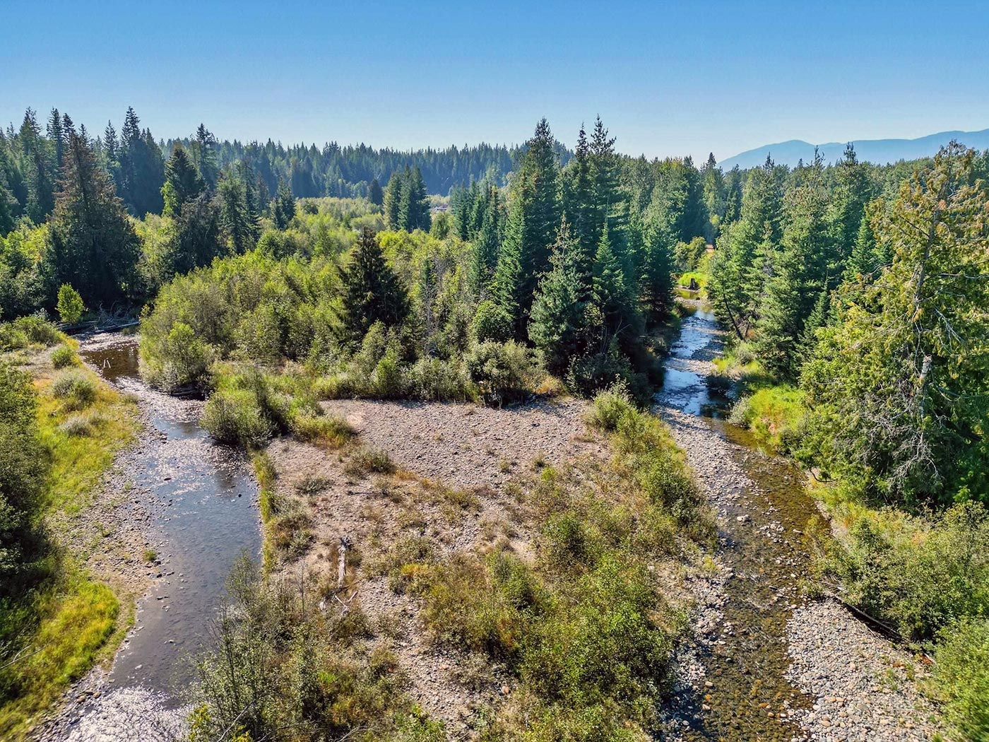 Welcome to your private storybook escape on 10 pristine acres with Grouse Creek frontage. This extraordinary stone estate, built by a renowned castle builder, blends old-world craftsmanship with modern comfort. Set at the end of a private drive in Sandpoint’s picturesque Selle Valley, the home captivates with its dramatic rooflines, hand-laid shingles, and porte cochere entry, all surrounded by fenced meadows, treed horizons, and serene creek frontage. A 40x50 gravel pad is already in place, ideal for a future barn, shop, or additional structure. Crafted entirely of timeless materials, the residence features a river rock exterior, stone interior walls, solid oak and quartzite slate floors with in-floor hydronic heating and double wall construction. Inside, every detail reflects artistry: custom dark walnut cabinetry, walnut-trimmed windows and porcelain countertops, Norman wood shutters, Hunter Pirouette shades, solid wood doors, and exquisite hand-carved accents including a detailed banister and arches. A dual-use open flame brick fireplace and woodstove, and imported Bertazzoni ovens from Italy enhance both function and design. Adding to the magic, the gothic-inspired garage features front and back handcrafted carriage-style doors that swing open, whimsical wide-plank man doors, and an additional attached carport. Above the garage, a sunlit studio and spa retreat await. The studio showcases floor-to-ceiling picture windows, a mini woodstove, artist loft, wet bar with wine fridge, and a spa-inspired bath with soaker tub and full sauna. A hand-carved balcony overlooking the property completes this retreat, while the porte cochere with an expansive open deck seamlessly connects the studio to the main house. This is a home where castles inspire, fairy tales begin, and old-world charm awaits. A one-of-a-kind estate crafted with a level of artistry that cannot be replicated. A rare residence that evokes timeless European charm for generations to come. With its private setting and separate studio retreat, the property also offers exceptional potential as a bed and breakfast or short-term rental destination.